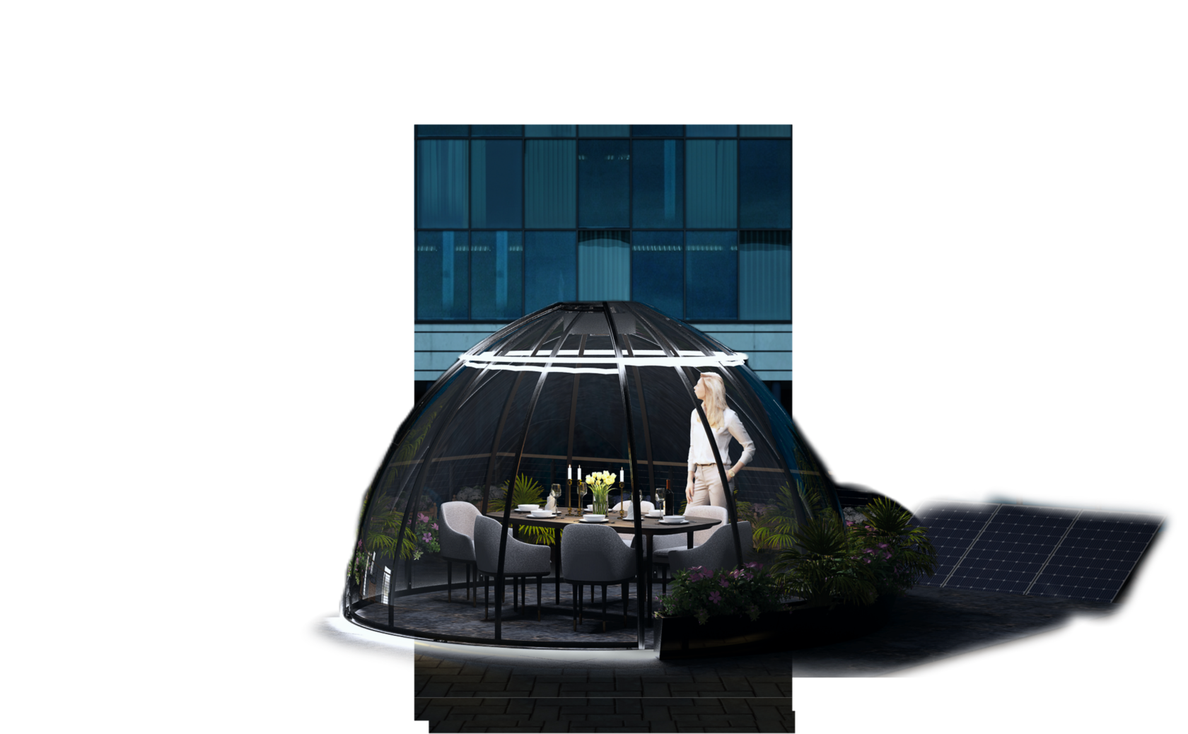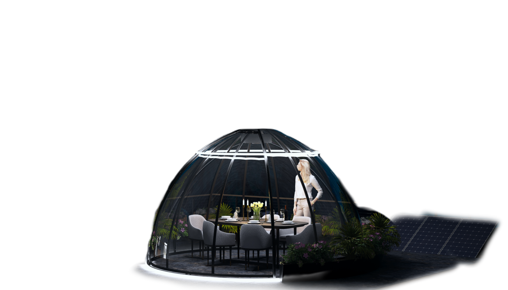 Под куполом можно разместить любые объекты: SPA и массажные кабинеты, бассейны, джакузи, бани, спортивные мини-залы, тематические relax-зоны, круглогодичные беседки, зоны семейного отдыха, мангальные зоны. Под куполом может обустроить полноценную жилую зону.